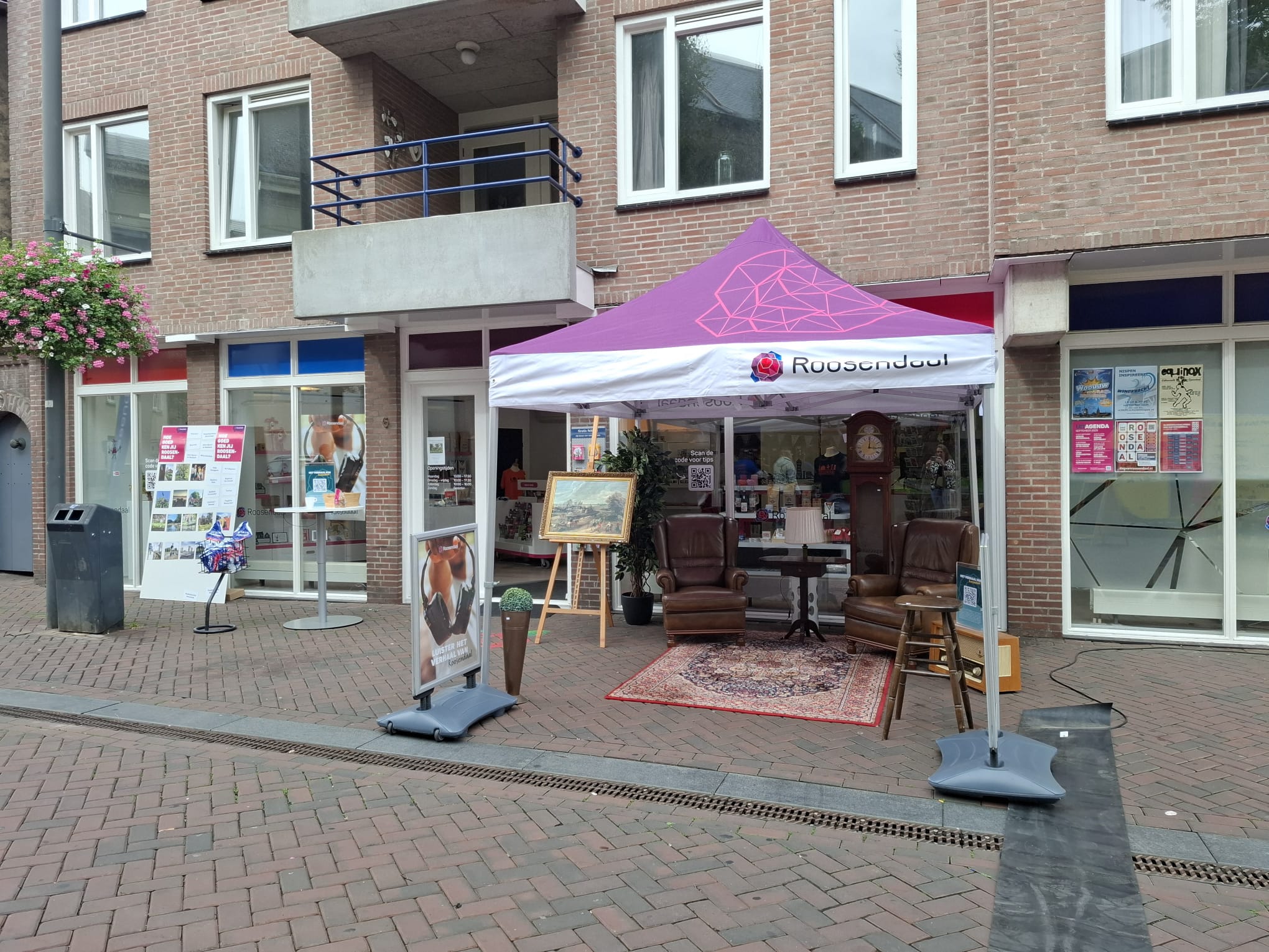 Tijdens de eerste editie van De Dag van Roosendaal op 21 september leverde De Kringloper een sfeervolle bijdrage aan het evenement. In opdracht van de Gemeente Roosendaal leverden we de inrichting van de huiskamerhoek, op het plein bij Het Huis van Roosendaal. Comfortabele stoelen, een vintage tafeltje en retro decoratie gaven de huiskamerhoek op het evenement een uniek en gezellig karakter.