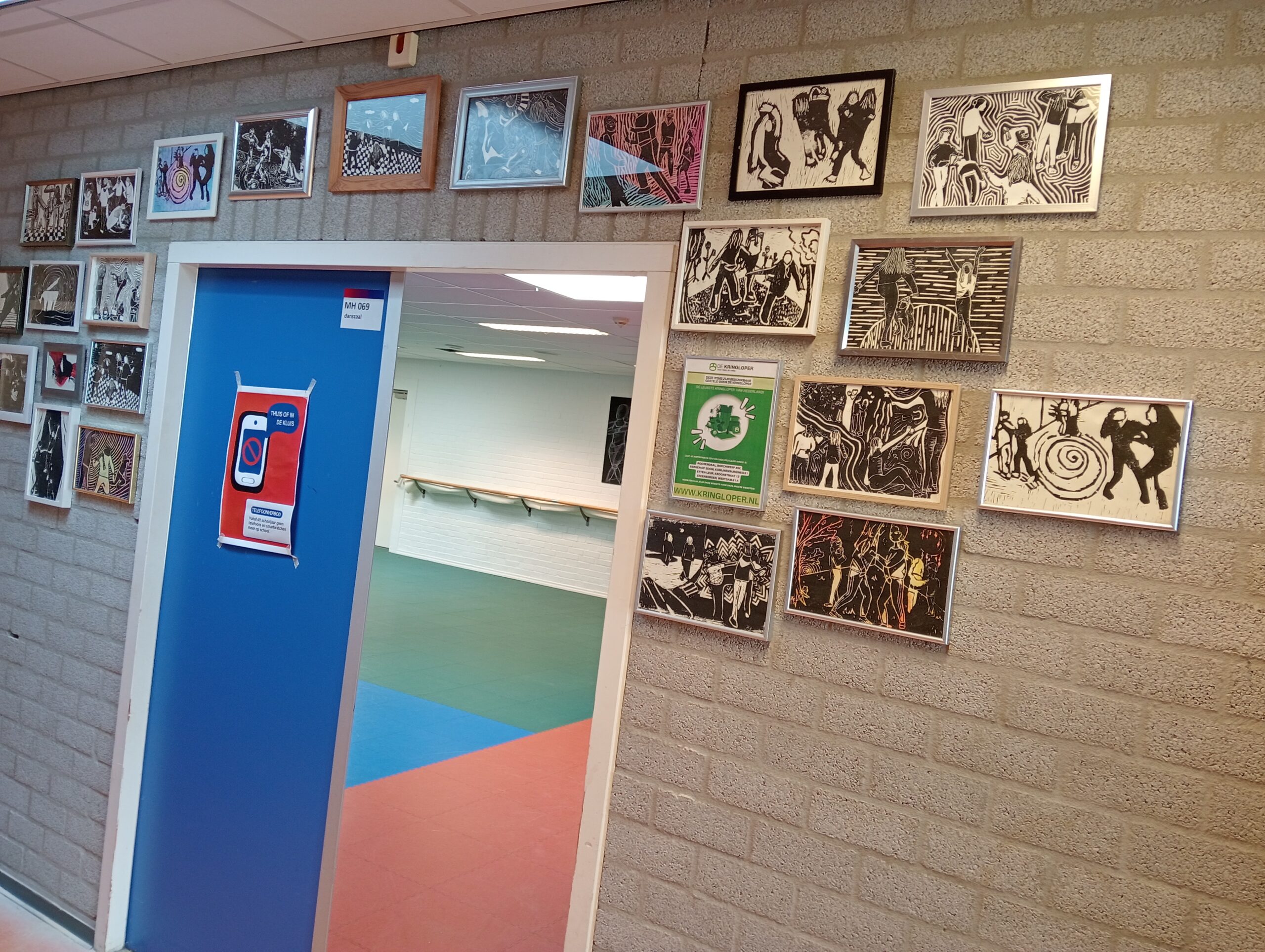 🖼️ De lijstjes kregen een tweede leven aan de muren van de school, met een vermelding naar De Kringloper erbij.