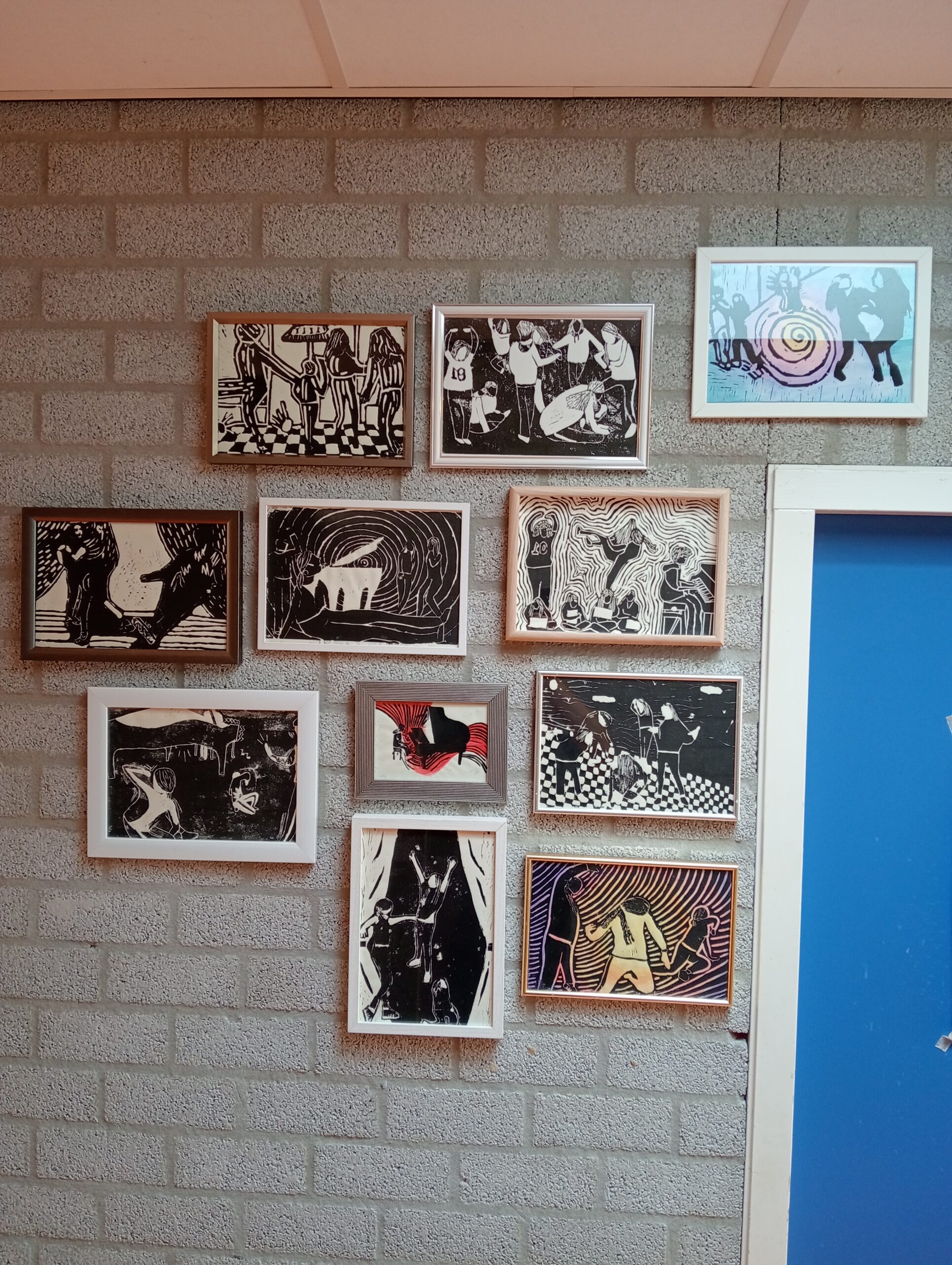 Voor een kunstproject op school Markenhage in Breda maakten leerlingen onder begeleiding van docent culturele vormgeving Frank Simons eigen drukwerk om op te hangen in de school. Een creatief en leerzaam traject waarbij Stichting De Kringloper met plezier een bijdrage leverde door lijstjes beschikbaar te stellen voor de presentatie van het werk.