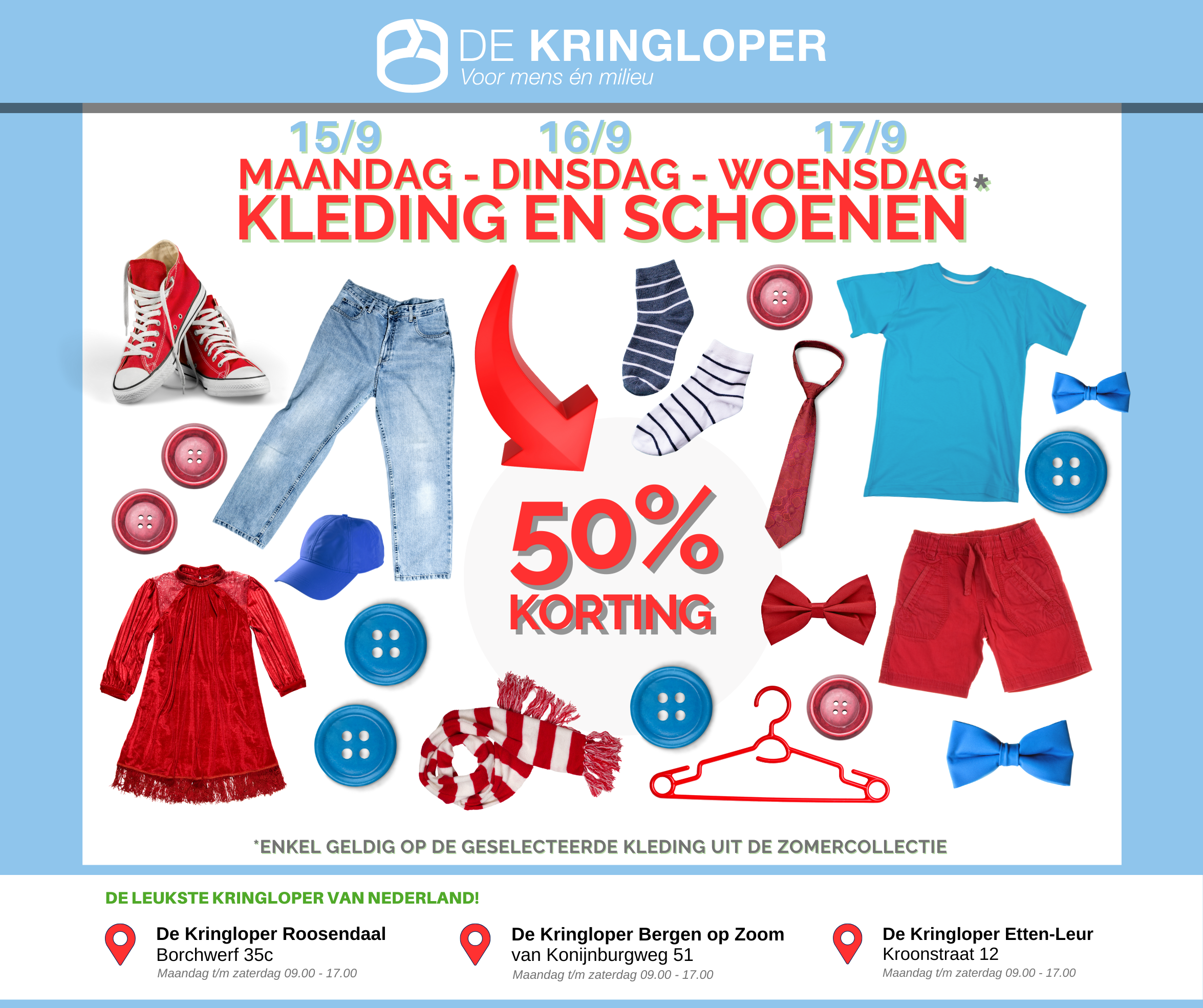 Op maandag 15, dinsdag 16 en woensdag 17 september scoor je zomerkleding met maar liefst 50% korting!